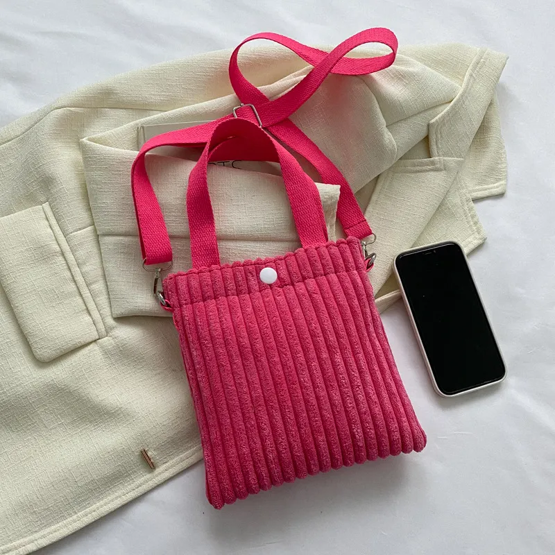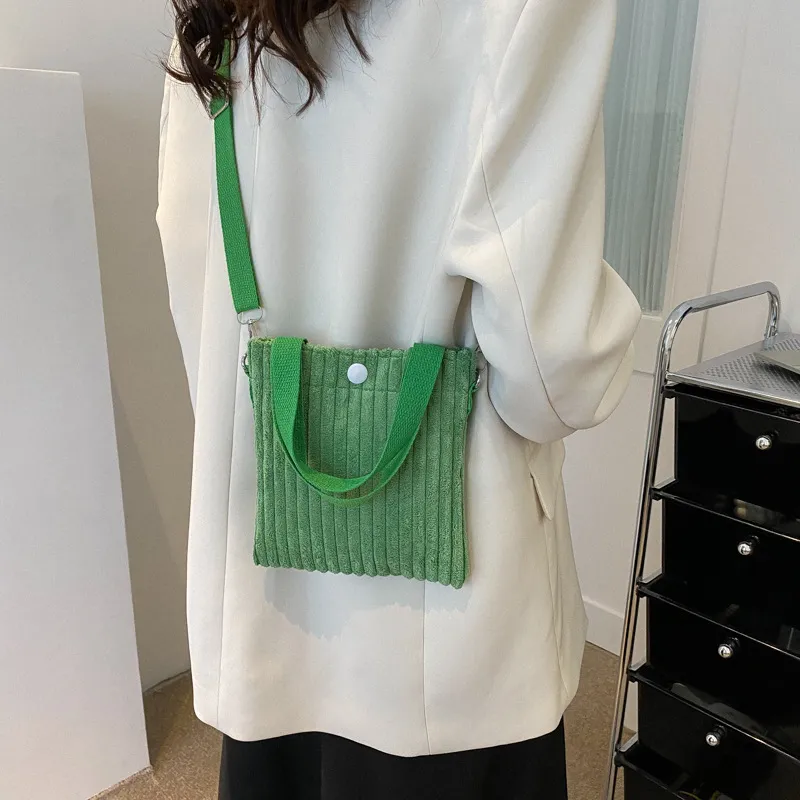 Single Shoulder Crossbody Solid Color Corduroy Simple Bucket Bag