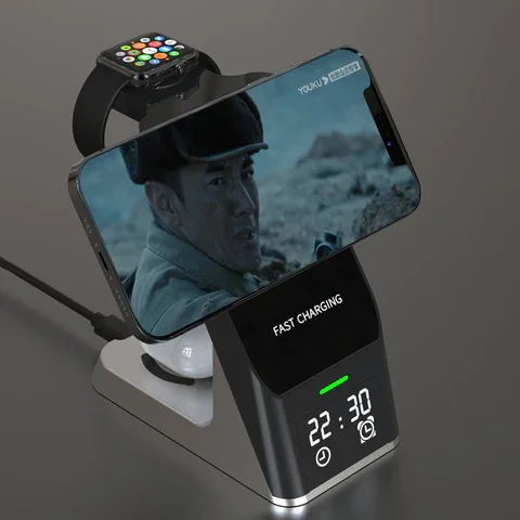 same time, and the digital time display is displayed. At the same time, this wireless charger also has the functions of clock, alarm clock
