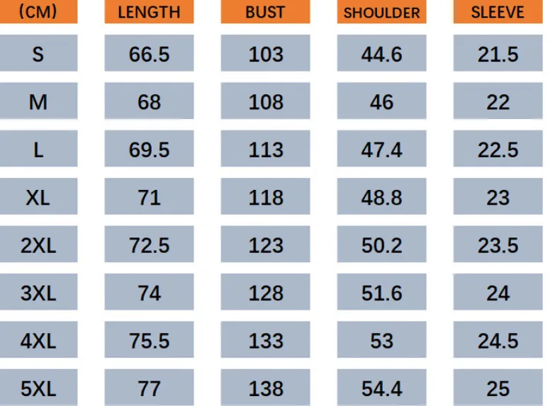 Size: S,M,L,XL,2XL,3XL,4XL,5XL