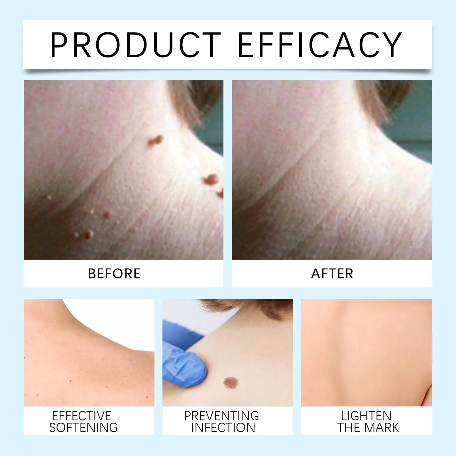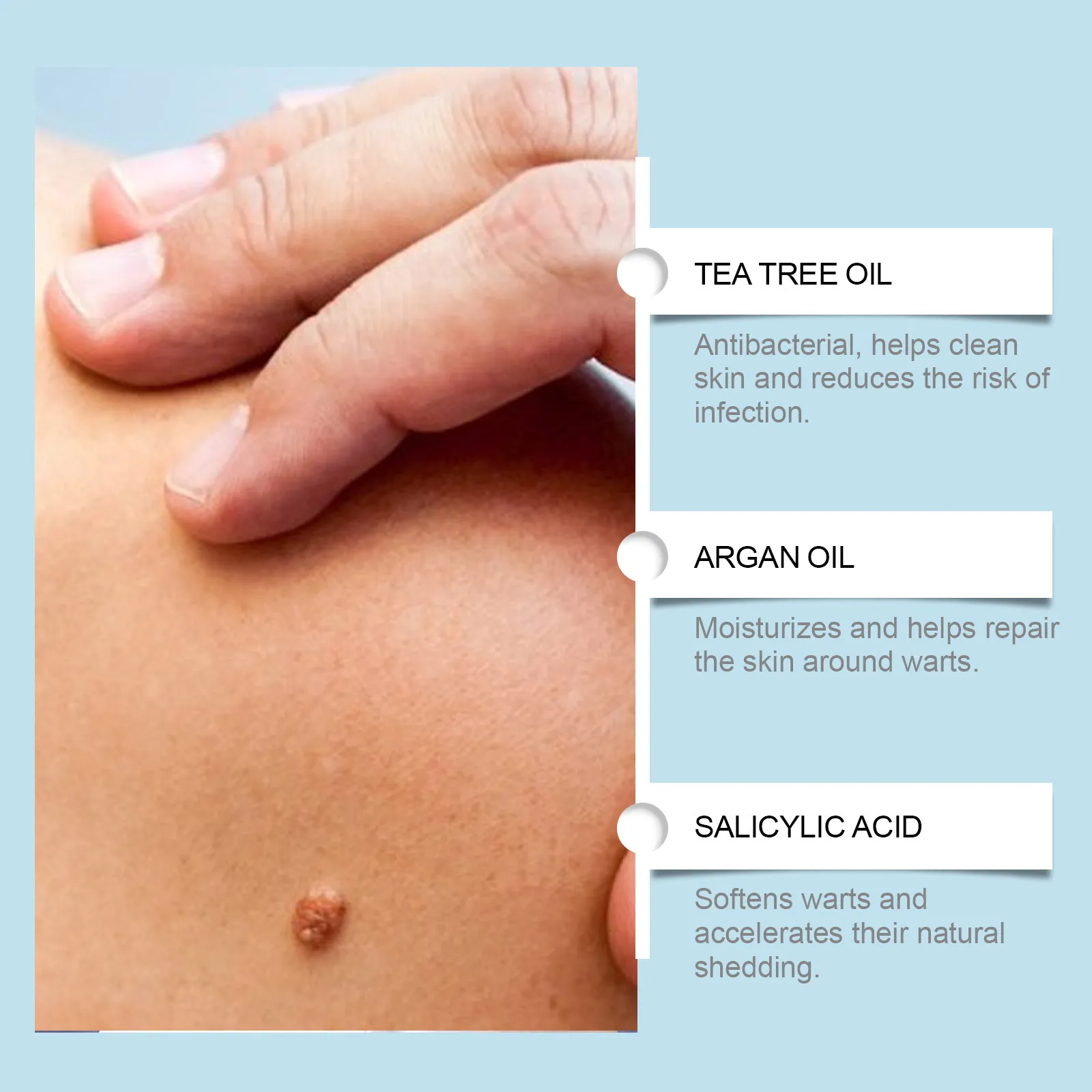 - Clean and dry the skin.