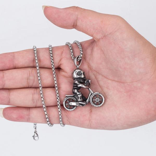 Whether you're riding through the streets, attending a cycling event, or just looking to add an edge to your everyday style, the Skull Bicycle Pendant complements a wide range of outfits and occasions.