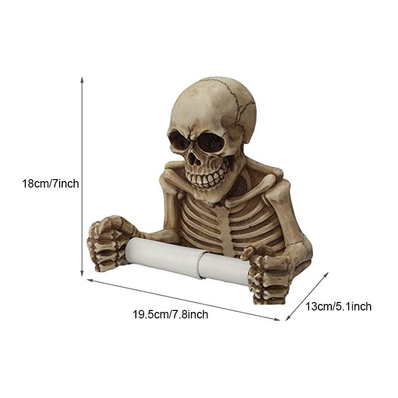 Add a bold and eerie touch to your bathroom with the Skull Toilet Paper Holder, a unique piece of gothic decor that is sure to catch attention. This creatively designed holder features a realistic skull, carefully crafted with intricate details, making it a standout accessory for anyone looking to add a spooky vibe to their home. Whether you're decorating for Halloween or embracing a year-round gothic theme, this toilet paper holder adds a touch of the macabre while serving its functional purpose. Made from high-quality resin, this durable piece is built to withstand daily use while maintaining its eye-catching appearance.The Skull Toilet Paper Holder is not only a fun decorative item but also practical and easy to install. Its sturdy design securely holds your toilet paper roll, ensuring easy access while adding a bit of dark humor to your bathroom decor. The skull’s realistic features, from its menacing grin to the hollowed eyes, create a dramatic effect that will surprise and delight guests. Perfect for those who appreciate quirky and unconventional designs, this holder complements a variety of gothic, punk, or alternative home styles. It also makes a great gift for lovers of horror, Halloween, or unique decor.Transform your bathroom into a space that reflects your personality with the Skull Toilet Paper Holder. Whether used as a permanent fixture or as part of a seasonal Halloween makeover, this decorative accessory provides a fun yet functional twist to your bathroom essentials. Its compact size makes it easy to mount on the wall, fitting seamlessly into your bathroom layout without taking up too much space. For those looking to break away from traditional bathroom decor and embrace something truly different, this skull-themed toilet paper holder is the perfect choice to add character and spookiness to your space.