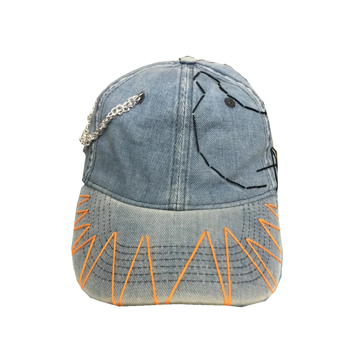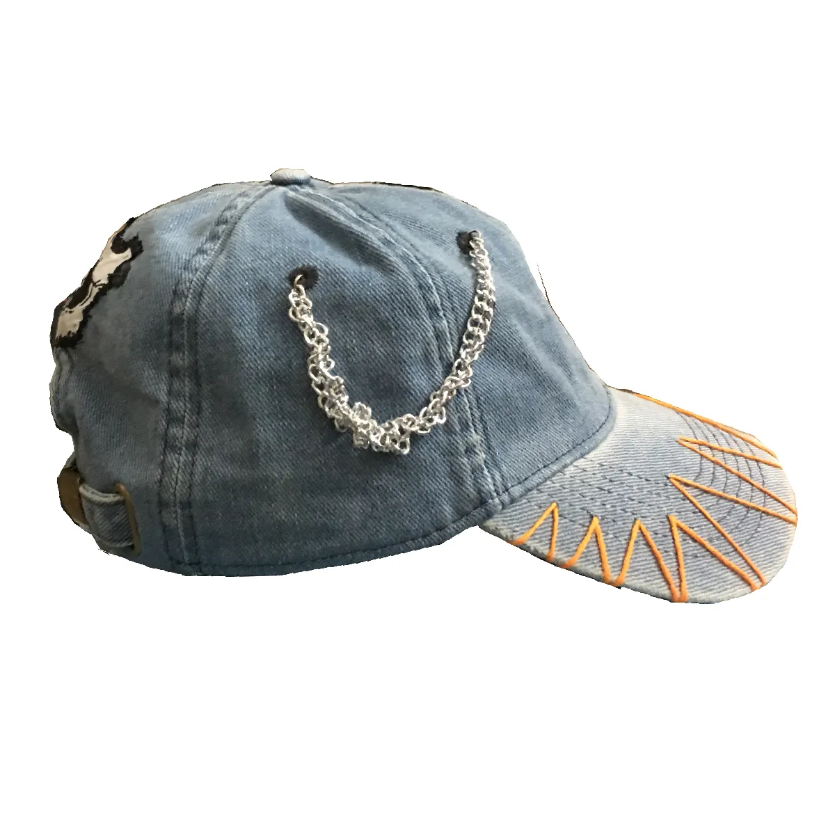 Skull Tooth Personalized Patch Design Washed Denim Hat