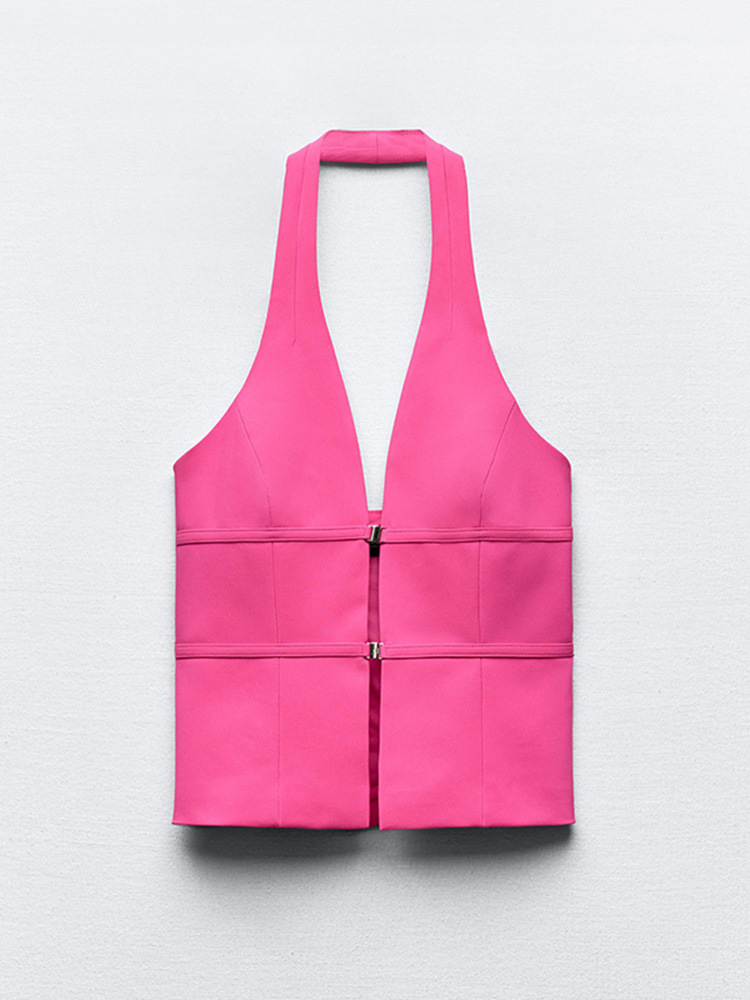 Sleeveless Halter Button Suit Slim Fit Backless Vest