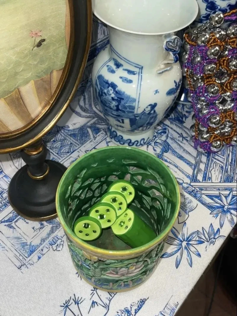 The vibrant green edges and textured inner design mimic the look of a freshly sliced cucumber.
