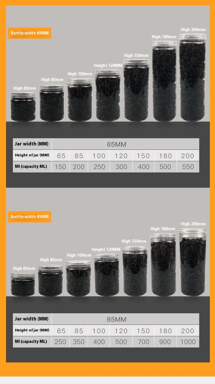 height transparent cover, diameter 65*85mm height transparent cover, diameter 65*100mm height transparent cover, diameter 65*120mm height