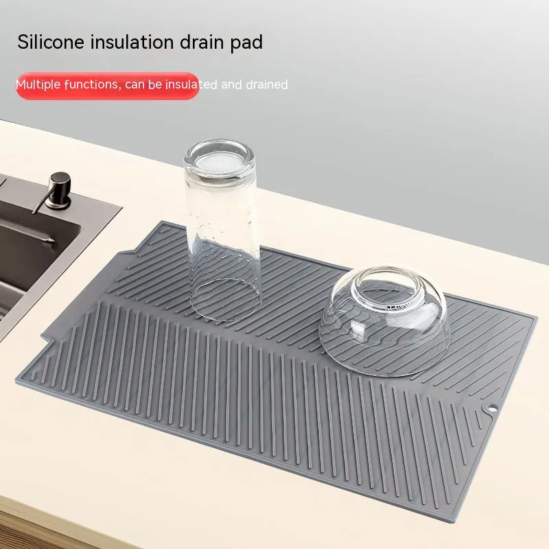 Beyond dish drying, the Sloped Silicone Draining Mat is versatile enough to function as a trivet for hot pots and pans, a base for rinsed produce, or a protective layer for fragile cookware. Its resilient construction ensures it maintains performance under frequent use and varied kitchen tasks.