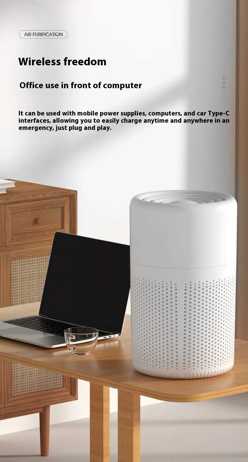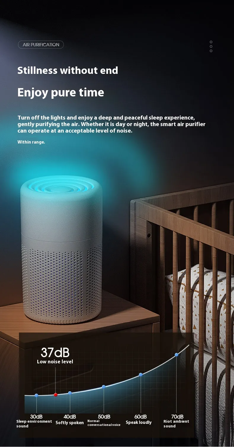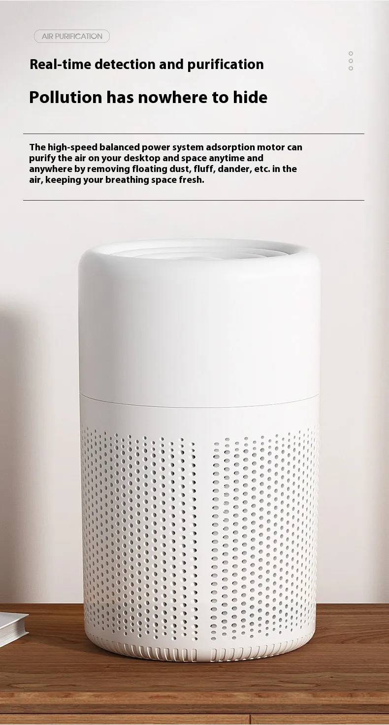 Built with convenience in mind, the Small Air Purifier features easy‑to‑use controls, simple filter replacement, and energy‑efficient performance. Its modern design integrates seamlessly into bedrooms, offices, living rooms, and other shared spaces, providing clean air around the clock — without taking up valuable floor or desk space.