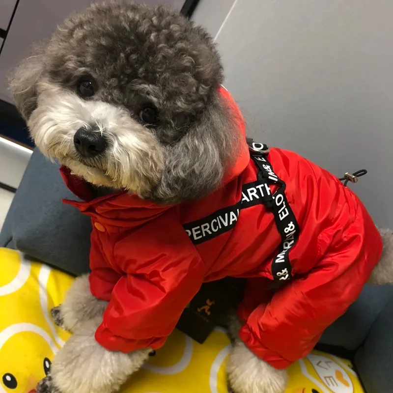 The four-legged winter clothes are not only practical but also stylish. The design is tailored to fit small breeds like the Bichon, ensuring that it’s snug and cozy without being too tight. Featuring a cute and fashionable design, your dog will be the center of attention on every walk. Whether it’s a simple walk in the park or an outing to a pet-friendly cafe, this outfit will keep your dog warm and stylish throughout the winter months.
