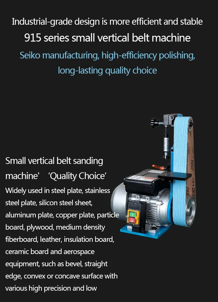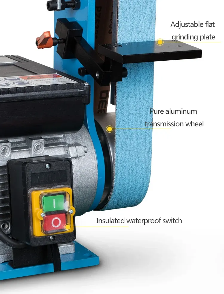 Enhance your woodworking and metalworking projects with our Small Vertical Sanding Belt Machine, an electric tool designed for efficient grinding, polishing, and knife sharpening. Compact yet powerful, this versatile sanding machine is ideal for hobbyists, DIY enthusiasts, and professionals alike. Its vertical design and adjustable sanding belt provide optimal control for a variety of tasks, from shaping wood and metal to sharpening knives and removing burrs with precision.