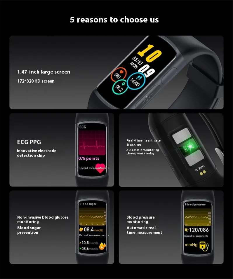 ⭐⭐⭐⭐⭐ "This bracelet has been life-changing. The blood glucose monitoring is so convenient, and the ECG feature gives me peace of mind." – Olivia, Christchurch