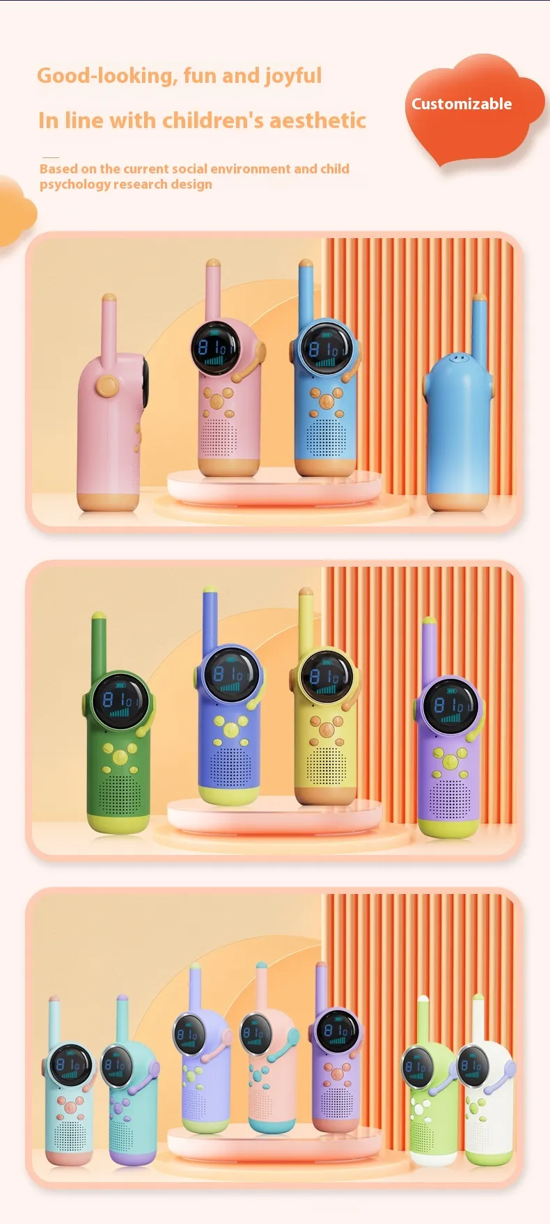 The interactive features of the walkie-talkie, combined with its cartoon-like design, inspire children’s creativity and imaginative play. Whether pretending to be secret agents, explorers, or detectives, kids can create and act out their own stories using the walkie-talkies as part of the narrative.