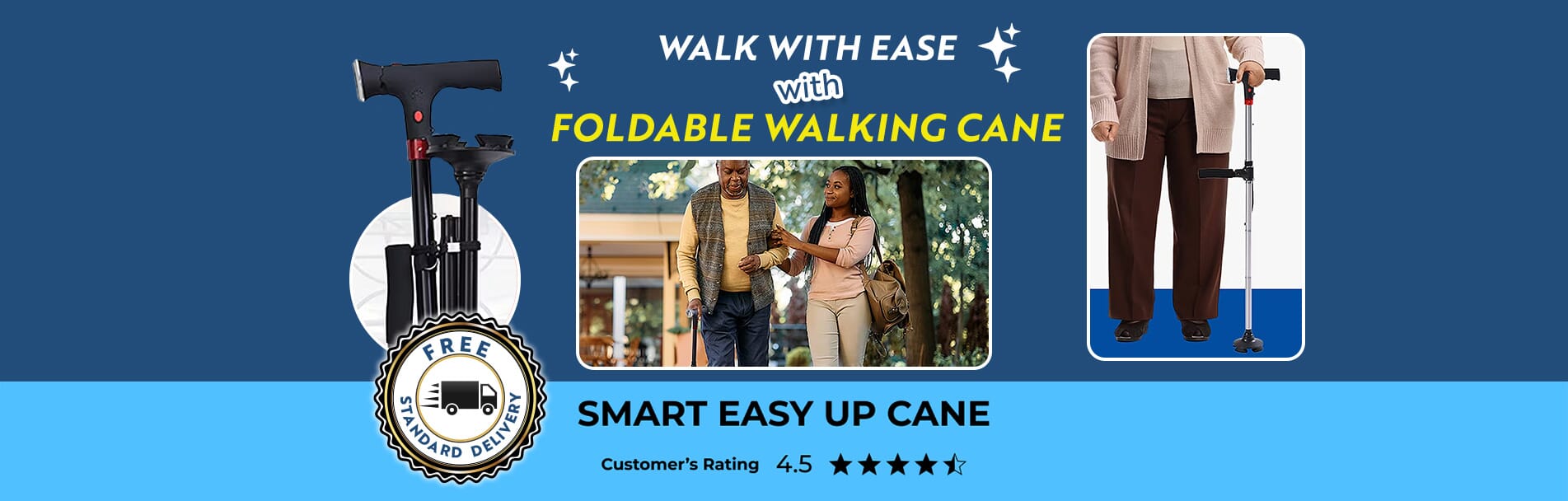 Stay active and independent with the Easy Up Walking Cane — your freedom, your step.