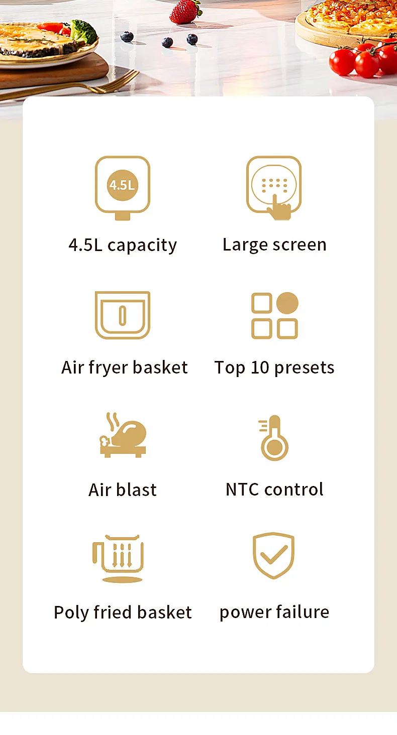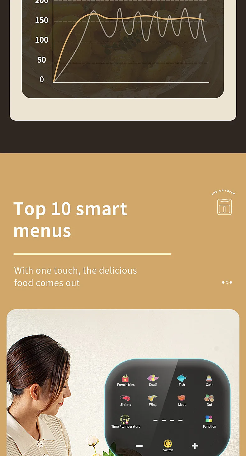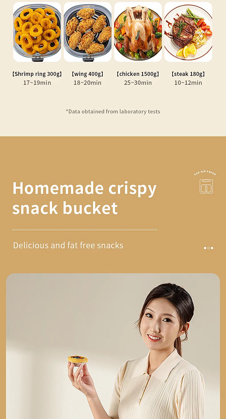 • Large Capacity :The smart electric air fryer boasts a large capacity, allowing you to cook more with less frequent batches. Perfect for those who love cooking in bulk.