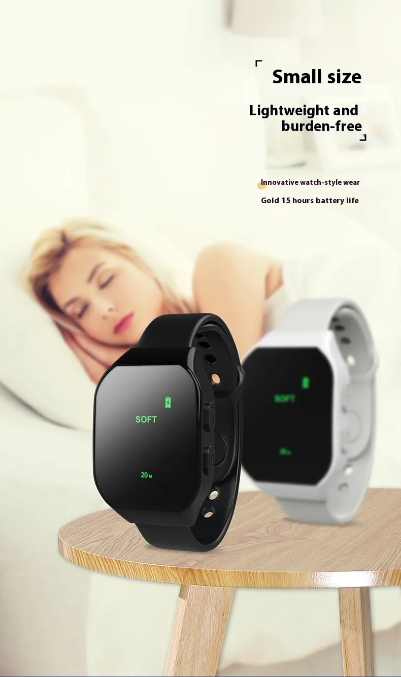 Designed to be worn on the wrist comfortably during sleep, the watch features a soft, lightweight strap suitable for all-night use. Its ergonomic design ensures it stays in place without causing discomfort.