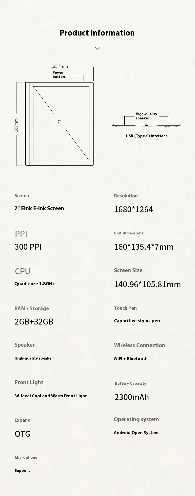 7 inch e-ink reader NZ, electric book reader 7", Android e-ink reader, portable e-book reader NZ, high-res 300 ppi e-ink 7″.