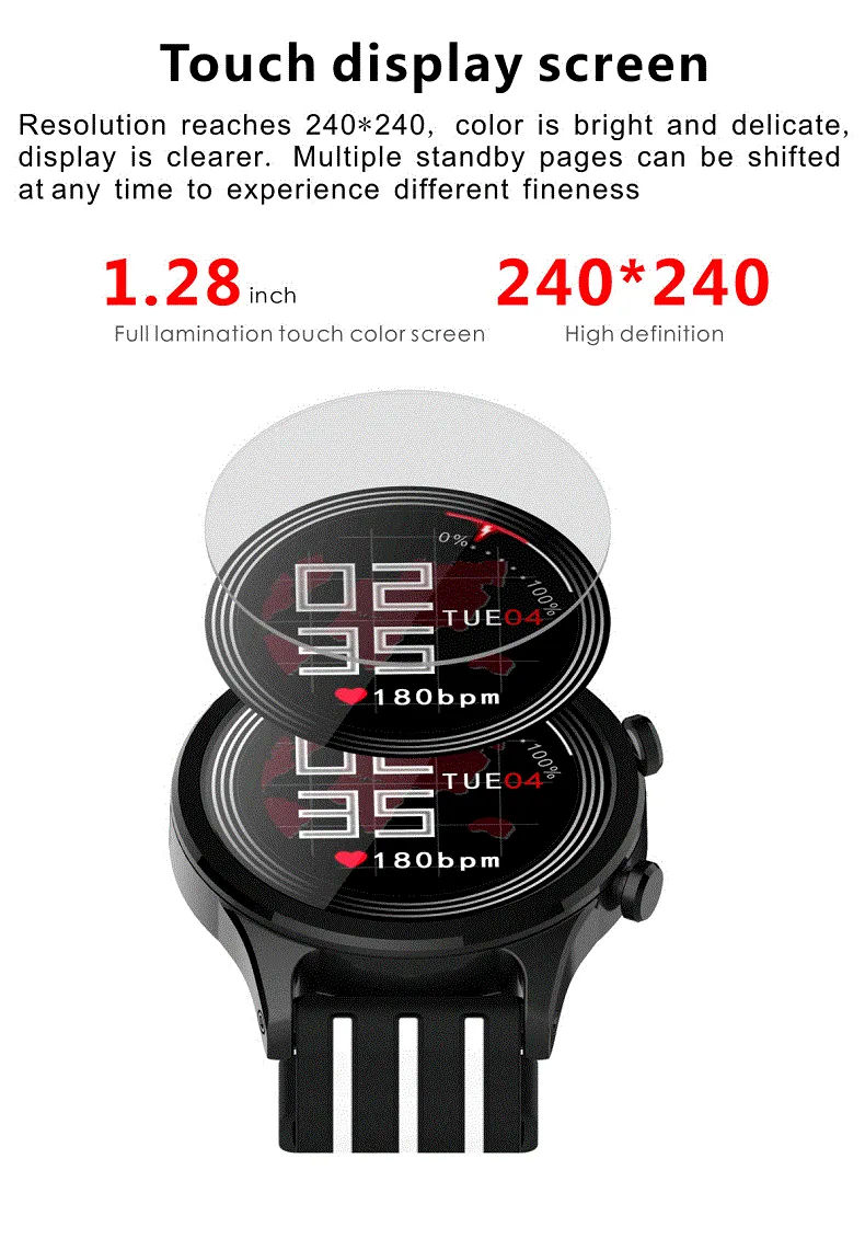 Full Touch Display: The smartwatch is equipped with a vibrant full touch display, providing a smooth and responsive