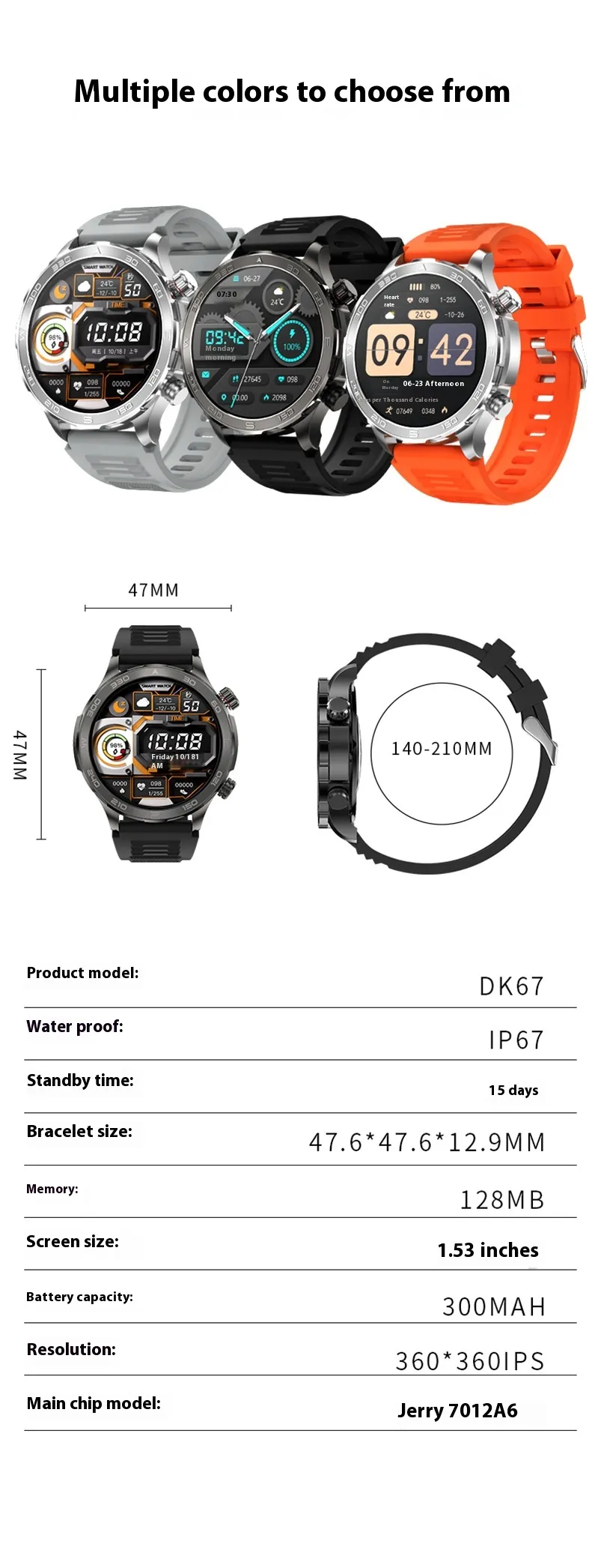 With multiple sports modes, the DK67 is designed for active individuals who want to track their workouts. Whether you're running, cycling, or walking, this smartwatch offers accurate tracking to help you achieve your fitness goals. Real-time data such as distance, pace, and calories burned gives you valuable insights to improve your performance.