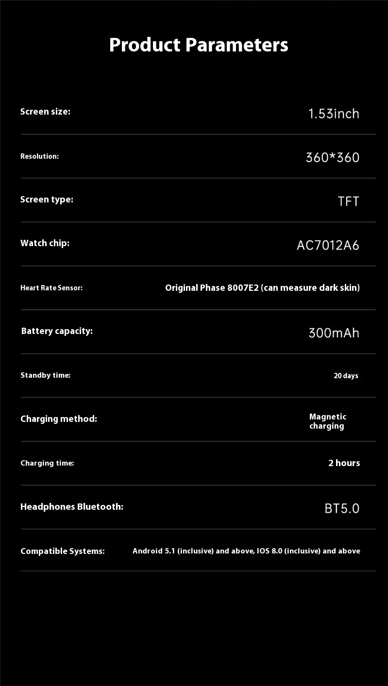 Functions: step counting, heart rate monitoring, blood pressure measurement, Bluetooth call, smart reminder, remote control selfie, sleep