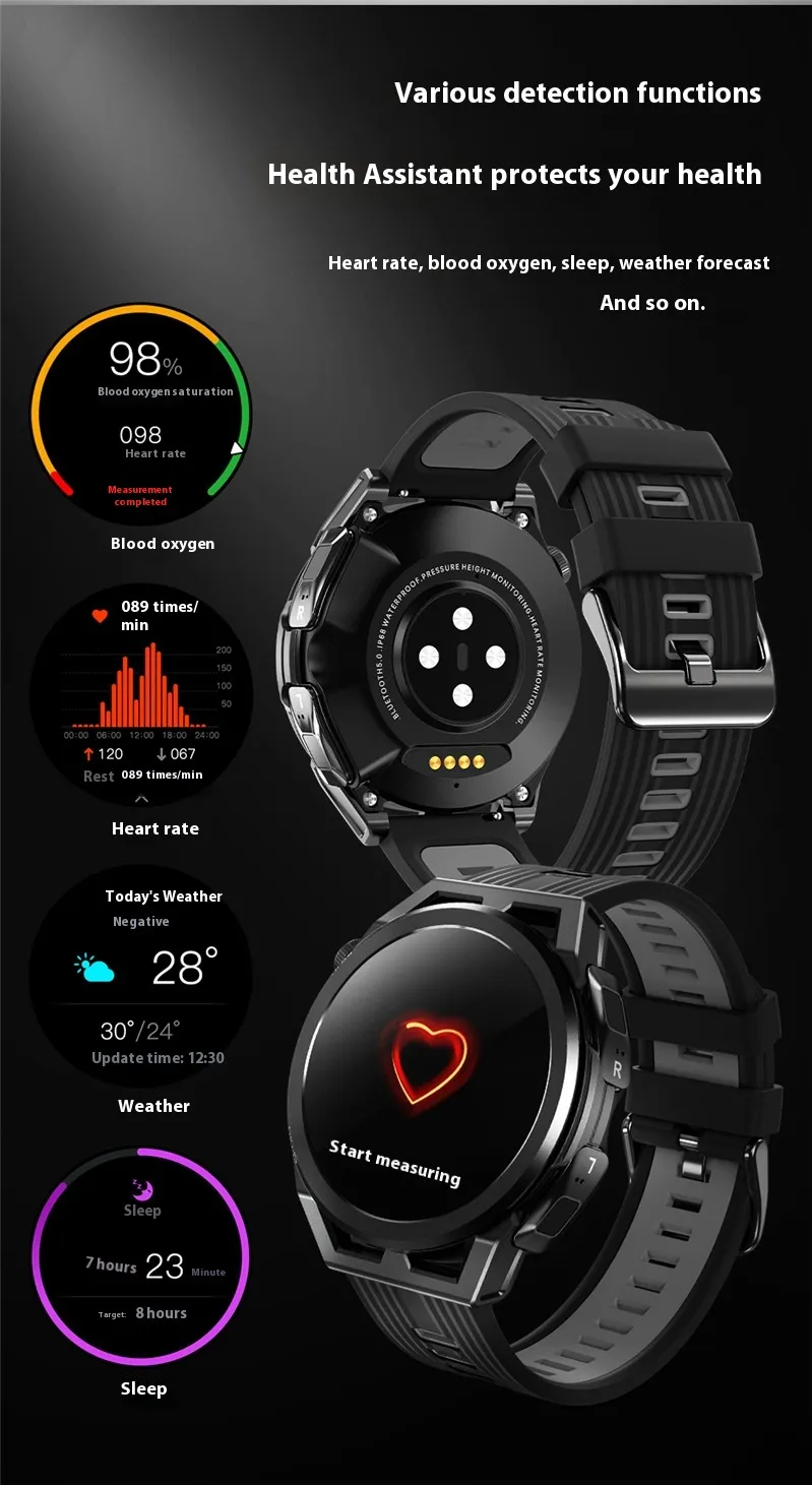 With 4GB of built-in memory, this smartwatch lets you store your favorite music, podcasts, or audiobooks. You can enjoy offline playback directly through the TWS earbuds, eliminating the need for a smartphone. Whether you’re at the gym, commuting, or relaxing, your entertainment is always within reach.