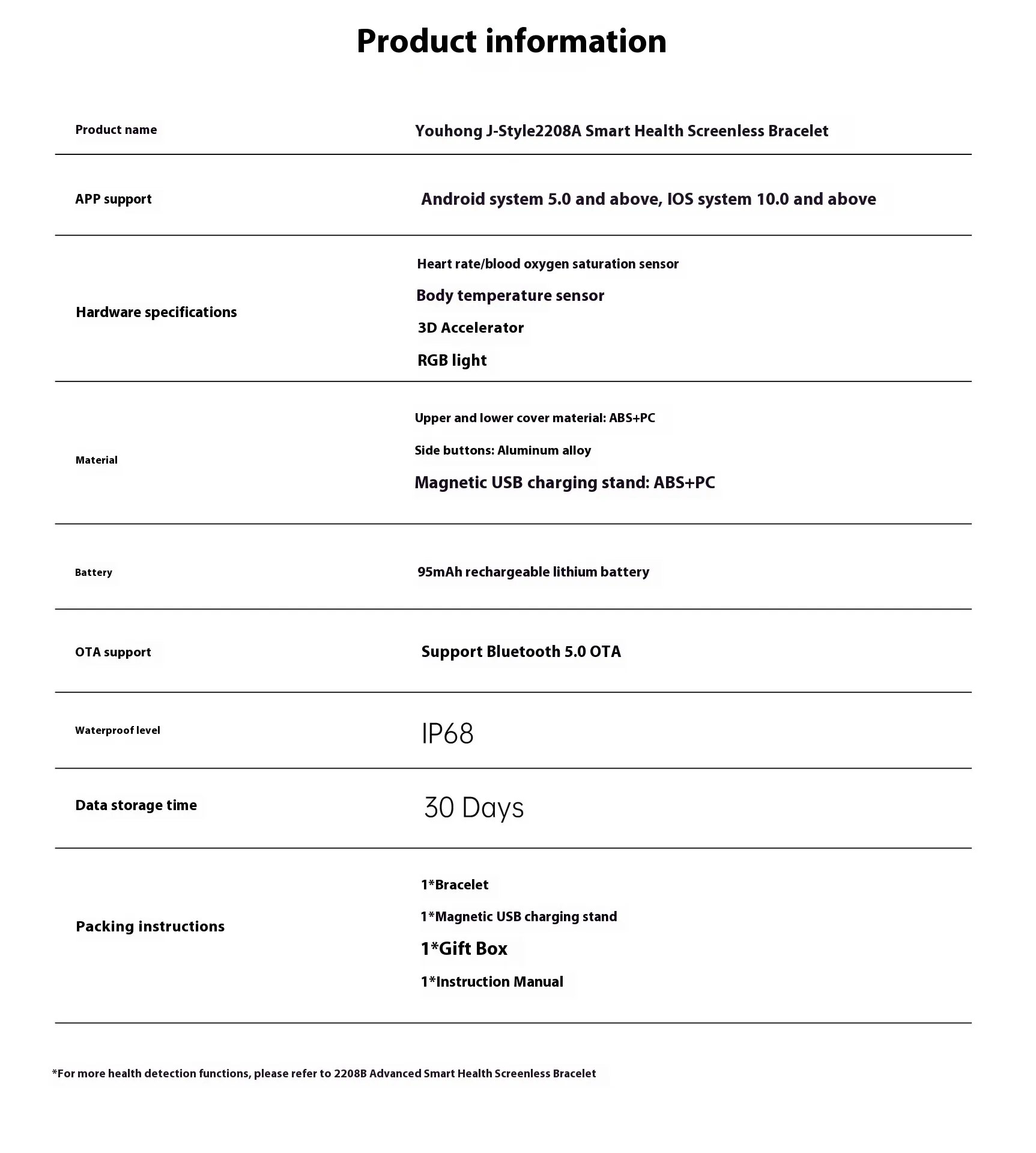 1 * Bracelet 1 * Magnetic USB charging dock 1 * Gift box 1 * User manualÂ