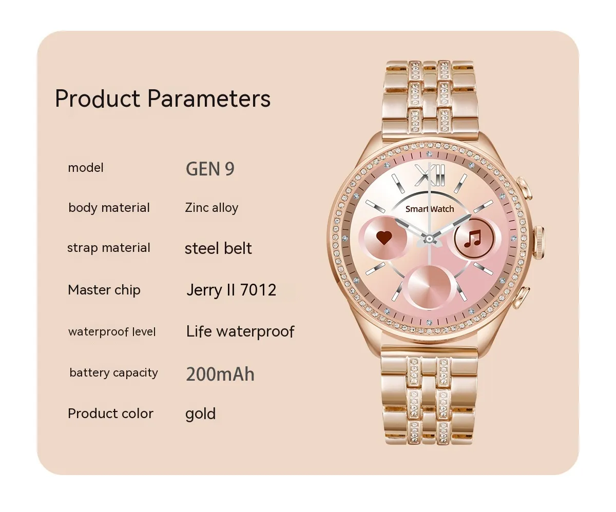 This women’s smartwatch boasts a chic, contemporary design that complements any outfit, from professional attire to casual wear. The slim case, vibrant display, and customizable watch faces make it the perfect accessory for women who want both fashion and function in one device.