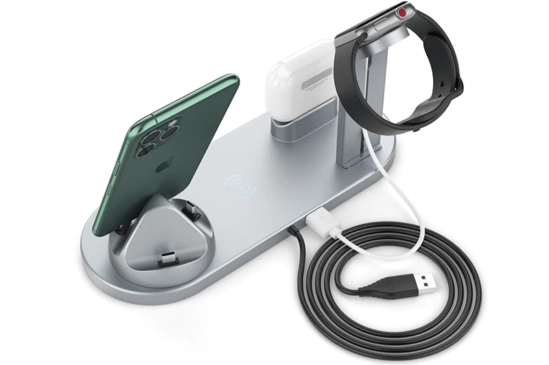 With our new Smart Charging Station, you can simultaneously charge your phone, smartwatch, and