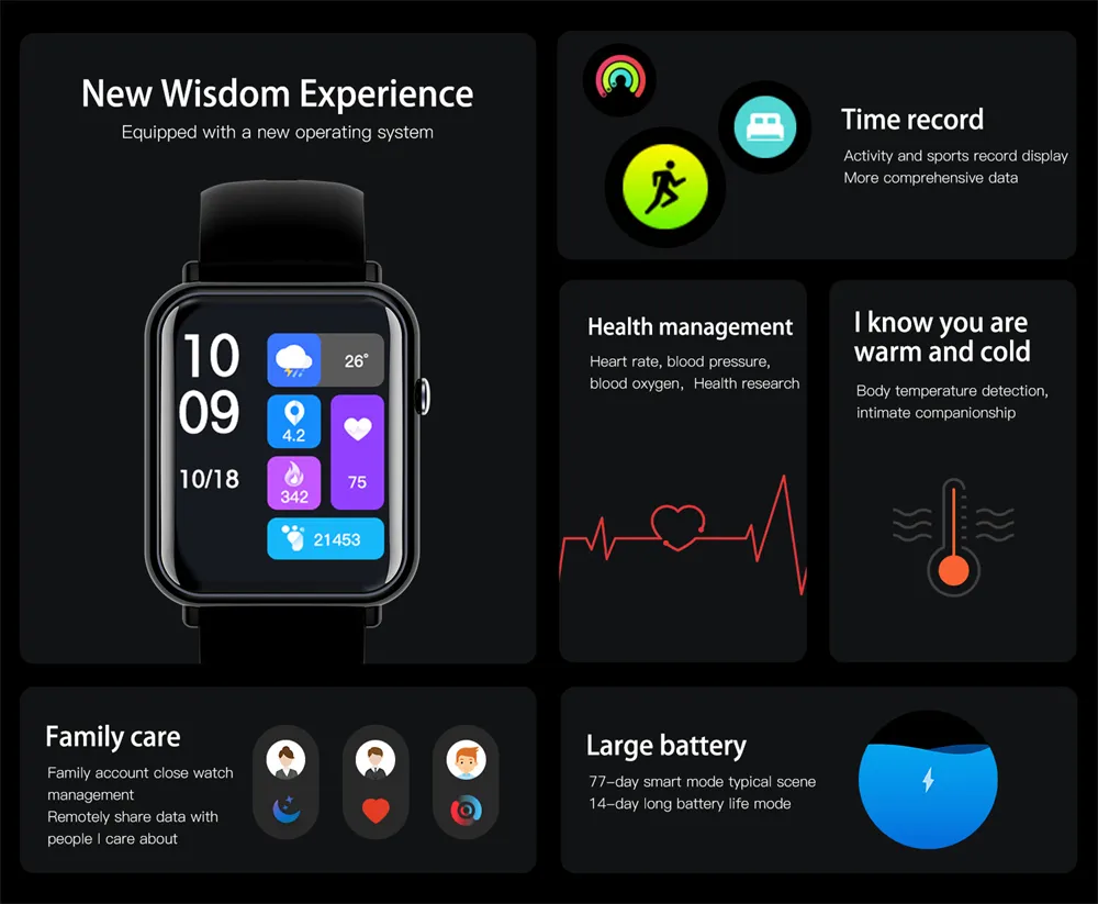 Health and Fitness Tracking: Includes features such as heart rate monitoring, sleep tracking, step counting, and calorie