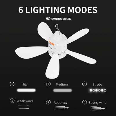 The SMILING SHARK 2-in-1 Fan Light is the ideal accessory for campers, outdoor adventurers, and anyone needing a portable, multifunctional fan and light combination. The three adjustable wind speeds and lighting modes allow you to customize your environment, while the rechargeable battery and USB Type-C charging port provide convenience and efficiency. Whether you need lighting for your tent or a cooling breeze for your patio, this fan light offers the perfect solution for all your outdoor and home needs.