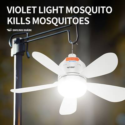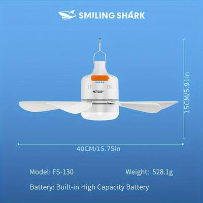 SMILING SHARK 2-in-1 Outdoor Camping Fan Light FS130 USB Rechargeable Fan with Lighting Modes for Camping, Tents, and Home Use