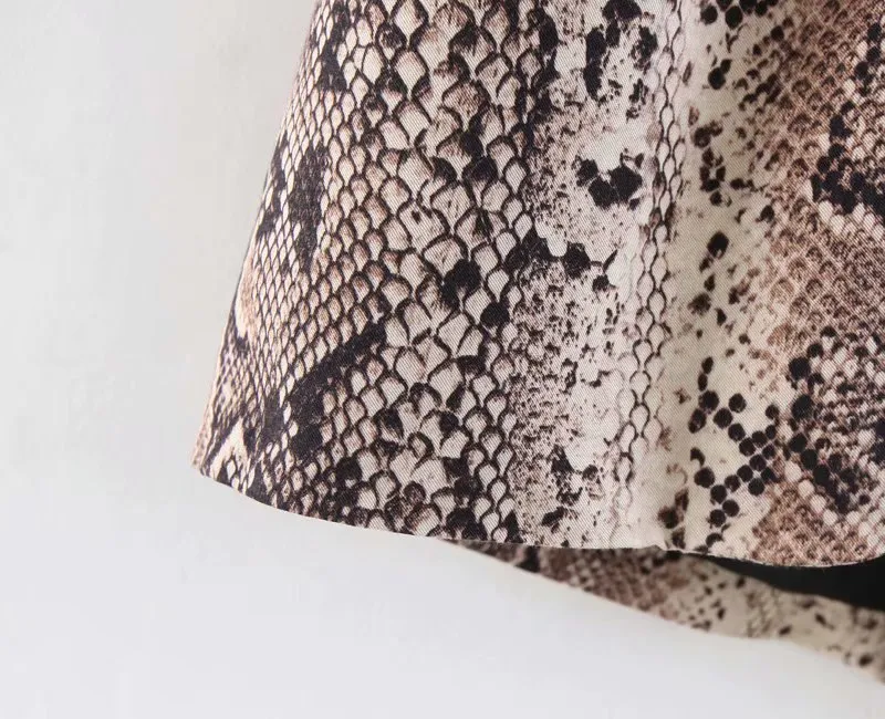 The standout feature of this top is its striking snake print design. Snake print has become a major trend in fashion, adding an edgy, wild flair to any outfit. The pattern mimics the scales of a snake, creating a dynamic and bold visual appeal. Whether you're a fan of animal prints or just looking for something new and exciting to add to your wardrobe, the snake print design offers a stylish and contemporary look that never goes out of style.