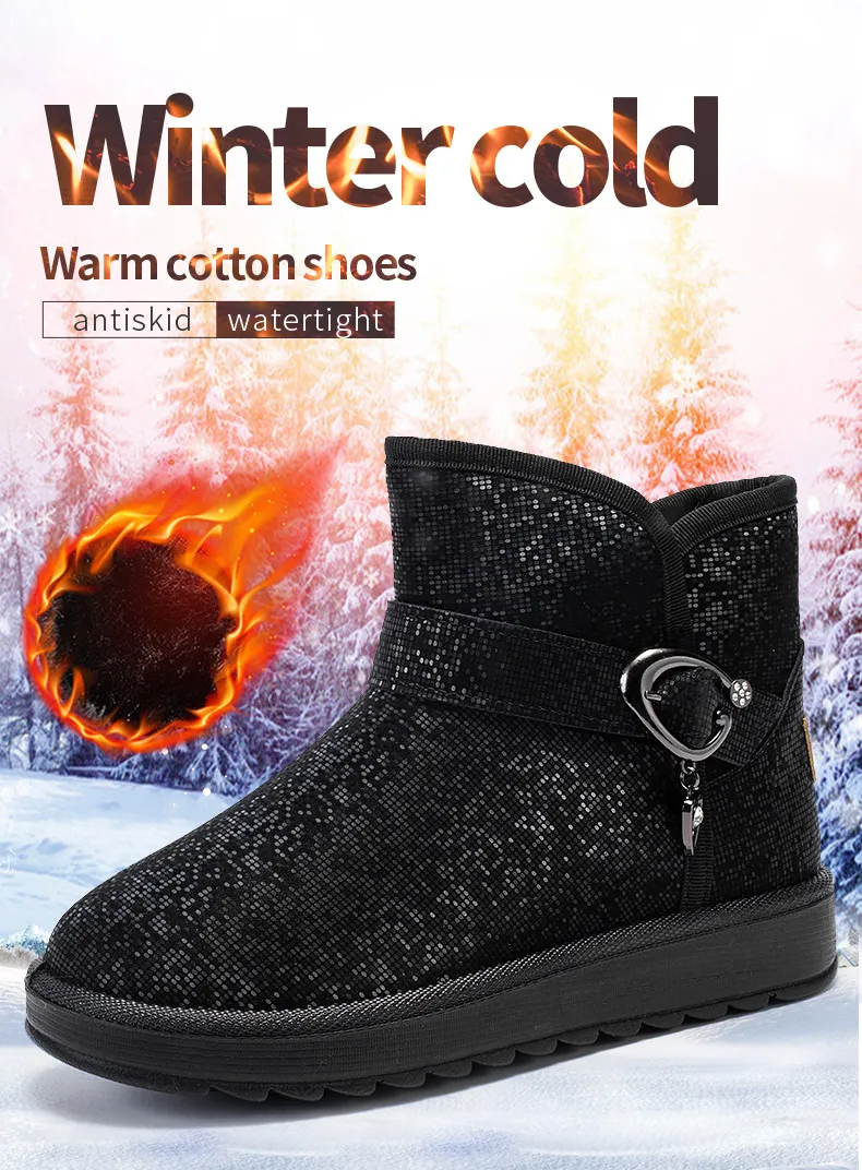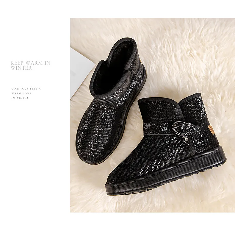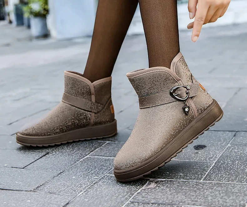 Snow Boots Women Winter Fleece-lined Thicken One Pedal Cotton Shoes Women Ankle Boots