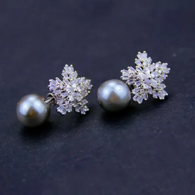 - Exquisite zircon earrings with diamonds and pearls