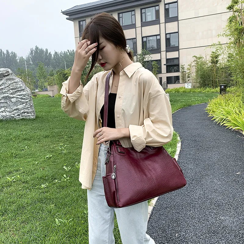 Soft Leather Large Capacity Women Hand-carrying Crossbody Bag Fashionable All-match