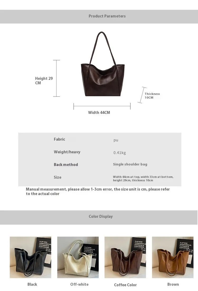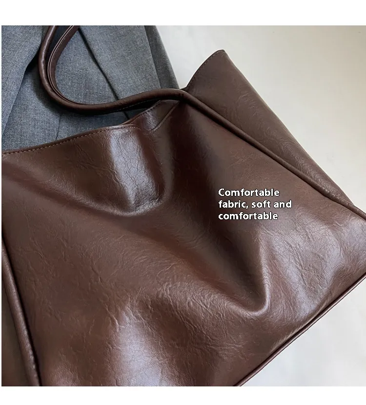 Soft Leather Shoulder Bag Large Capacity Commuter Totes Shopping Travel Bags For Women