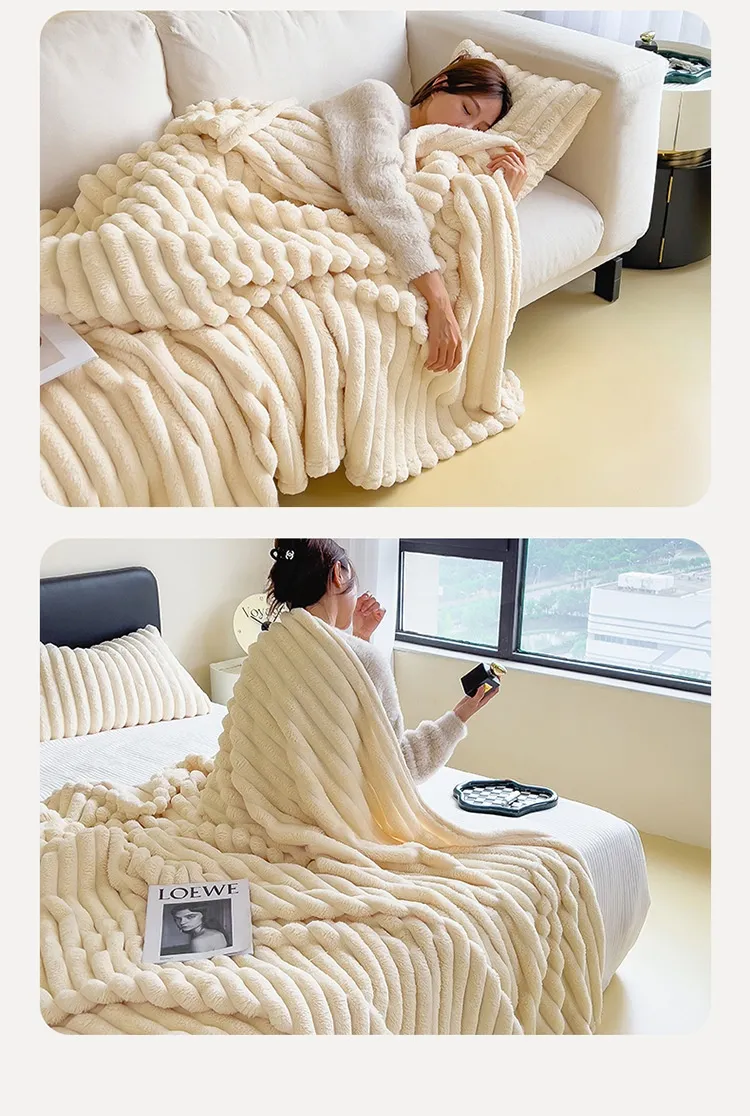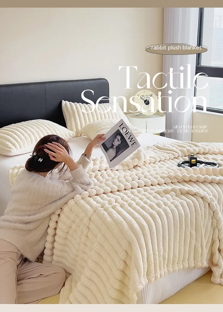 Soft Wind Bubble Velvet Blanket Warm Solid Rabbit Fur Blankets Double-sided Thickening Cover Throw Warm Fur Blanket