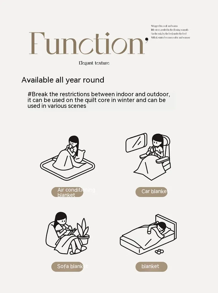 Whether you're curled up with a book at home, enjoying a picnic, or need that extra comfort while traveling, this blanket is the perfect companion. Its lightweight design makes it effortlessly portable, so you can carry comfort with you to any destination.
