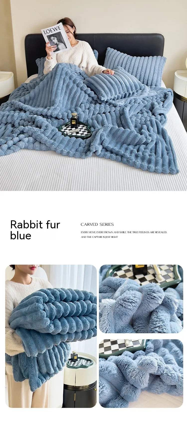 Superior Warmth and Softness: Embrace the cozy embrace of our Luxurious Bubble Faux Rabbit Fur Blanket, a premium blanket with AB double-sided thickening designed to infuse warmth into your life.