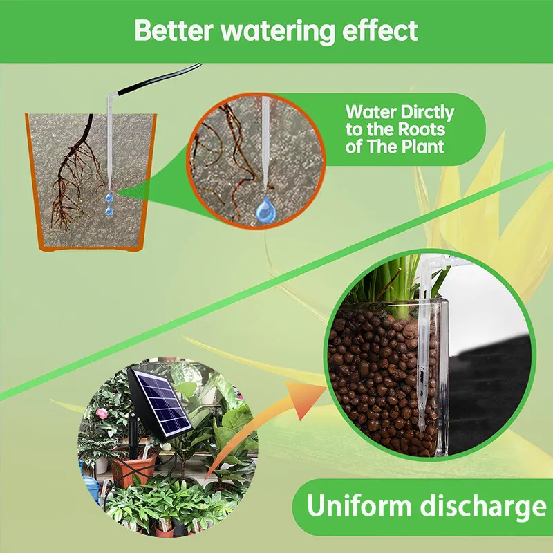 Water-Efficient Design: Designed to minimize water wastage, the solar-powered system delivers water directly to the root