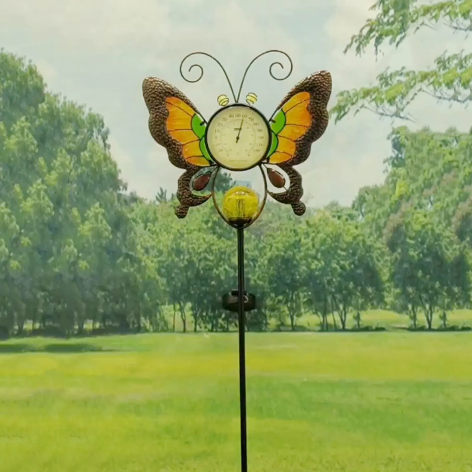 This garden thermometer doubles as a decorative garden stake, bringing both beauty and practicality to your outdoor space. During the day, it functions as a temperature gauge, and at night, it transforms into a glowing beacon, adding warmth and charm to your garden, lawn, or patio.