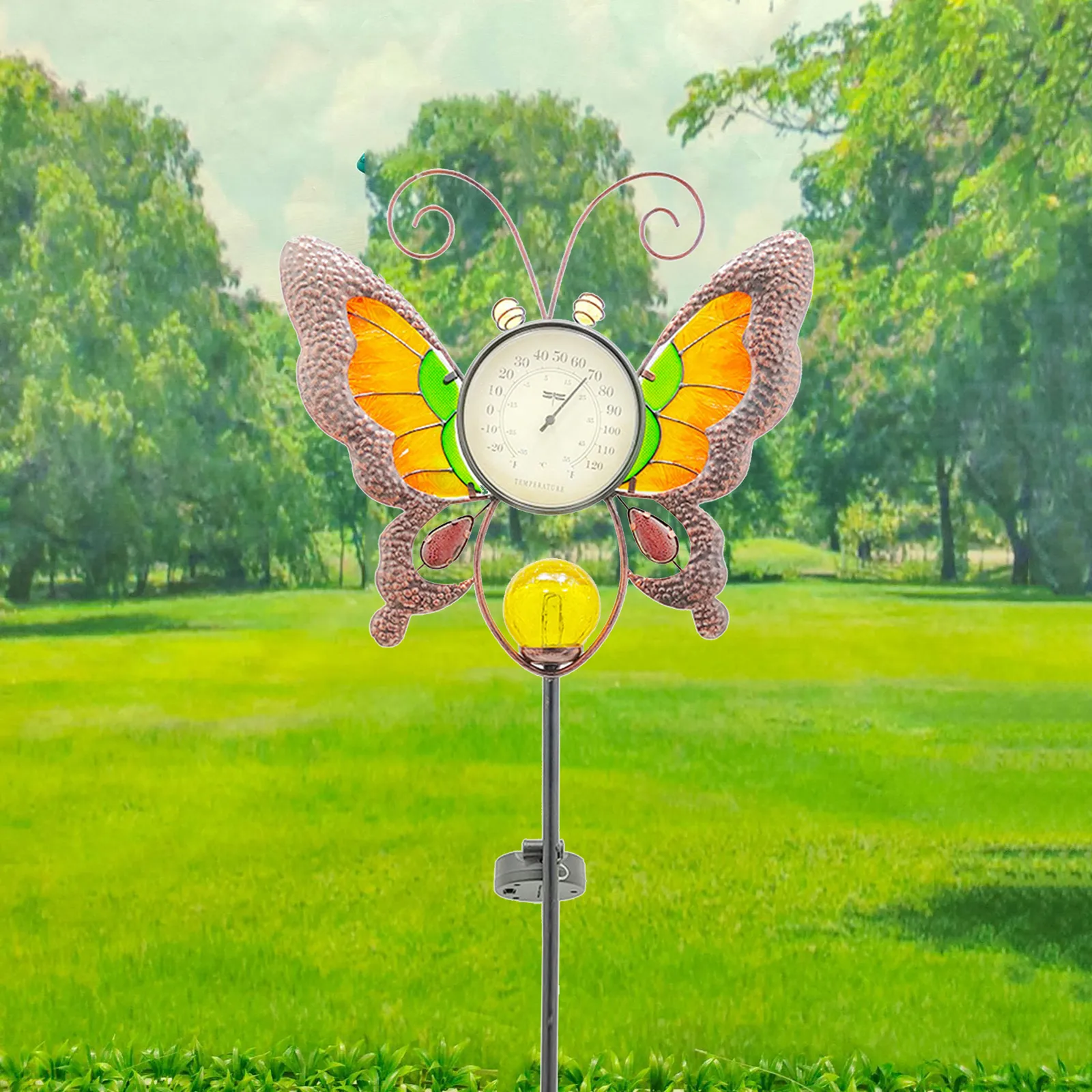 This garden thermometer doubles as a decorative garden stake, bringing both beauty and practicality to your outdoor space. During the day, it functions as a temperature gauge, and at night, it transforms into a glowing beacon, adding warmth and charm to your garden, lawn, or patio.