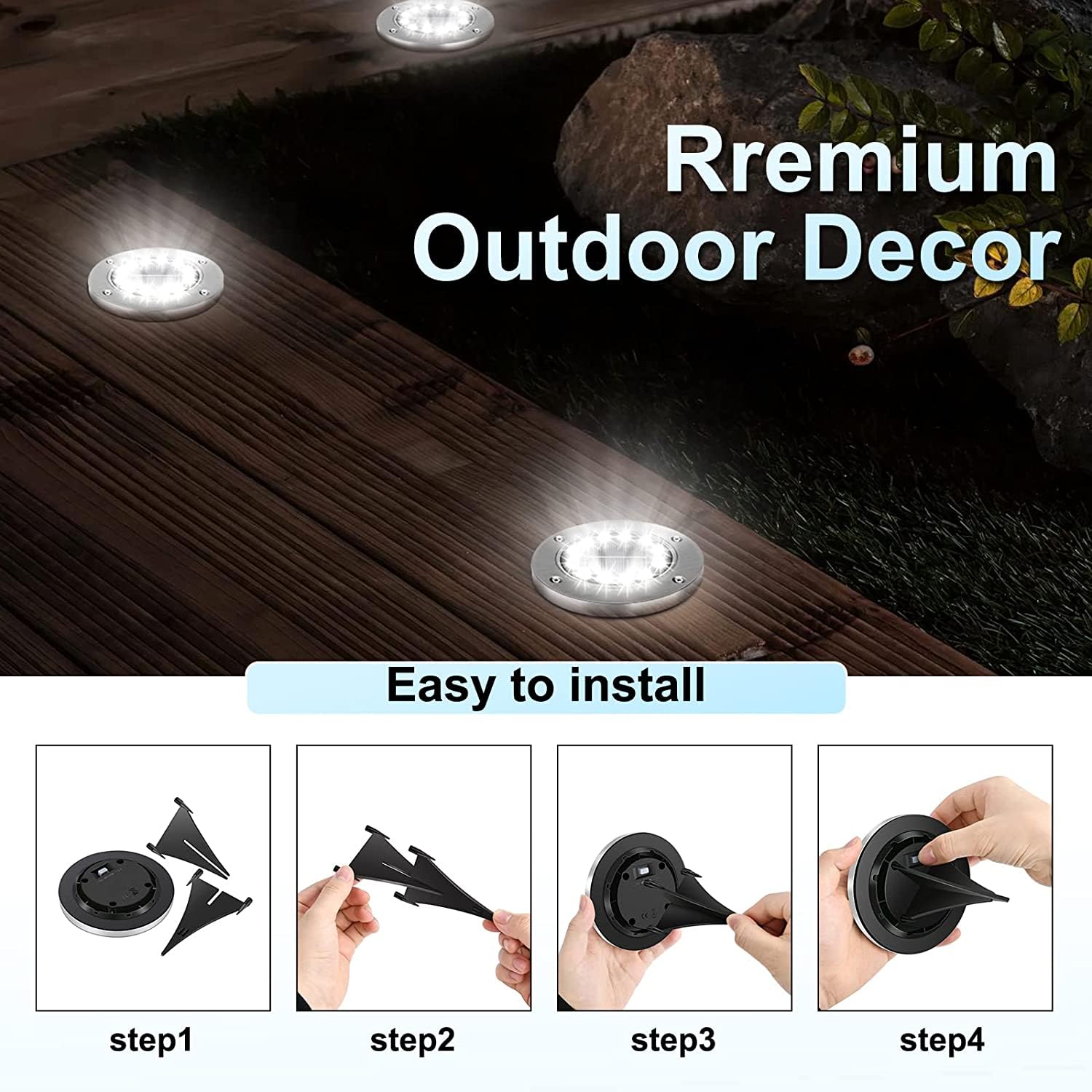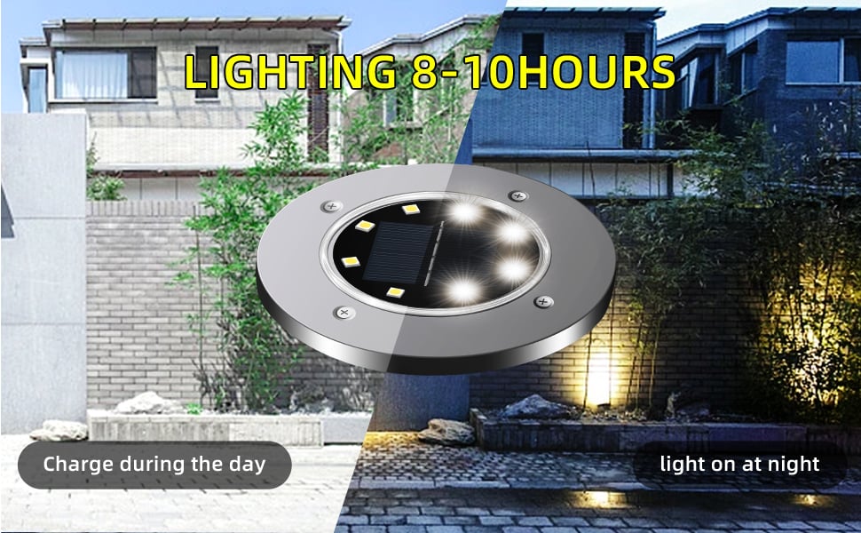 - 💡Solar Garden In-ground Lights: Each solar ground lights has 8 LEDs with a built-in 600 mAh NIMH rechargeable battery, lights will work up to 8-10 hours after fully charged, energy saving and eco-friendly.