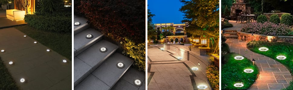 - 💡Durable Waterproof Solar Disc Light: Equipped with a stainless steel lamp shells, waterproof durable design, and external waterproof switch, these solar buried lights are durable enough to withstand harsh weather.