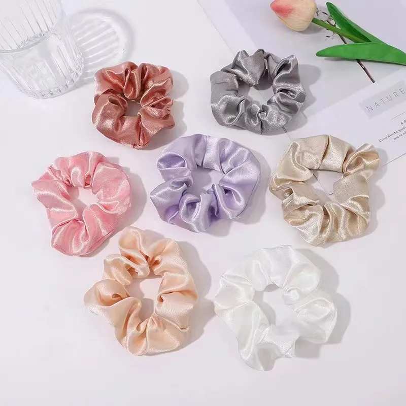 Solid Color Crystal Satin Large Intestine Hair Ring – Elegant & Stylish Hair Accessory
