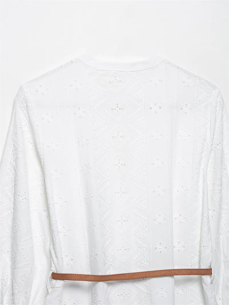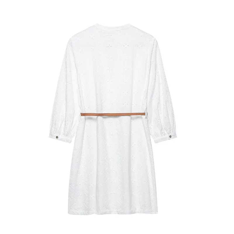 Solid Color Hollow Embroidery Mini Dress – Chic, Elegant, and Fashion-Forward