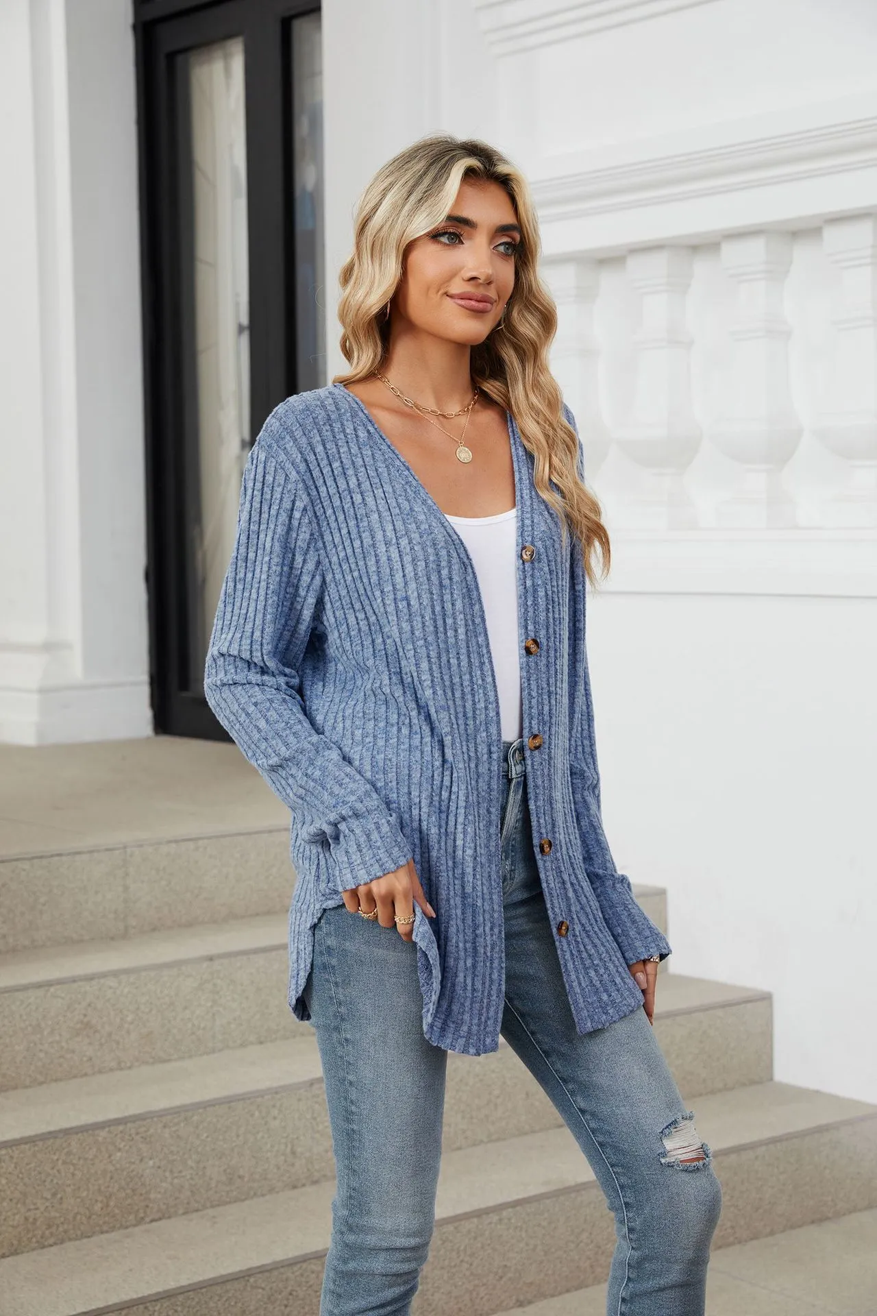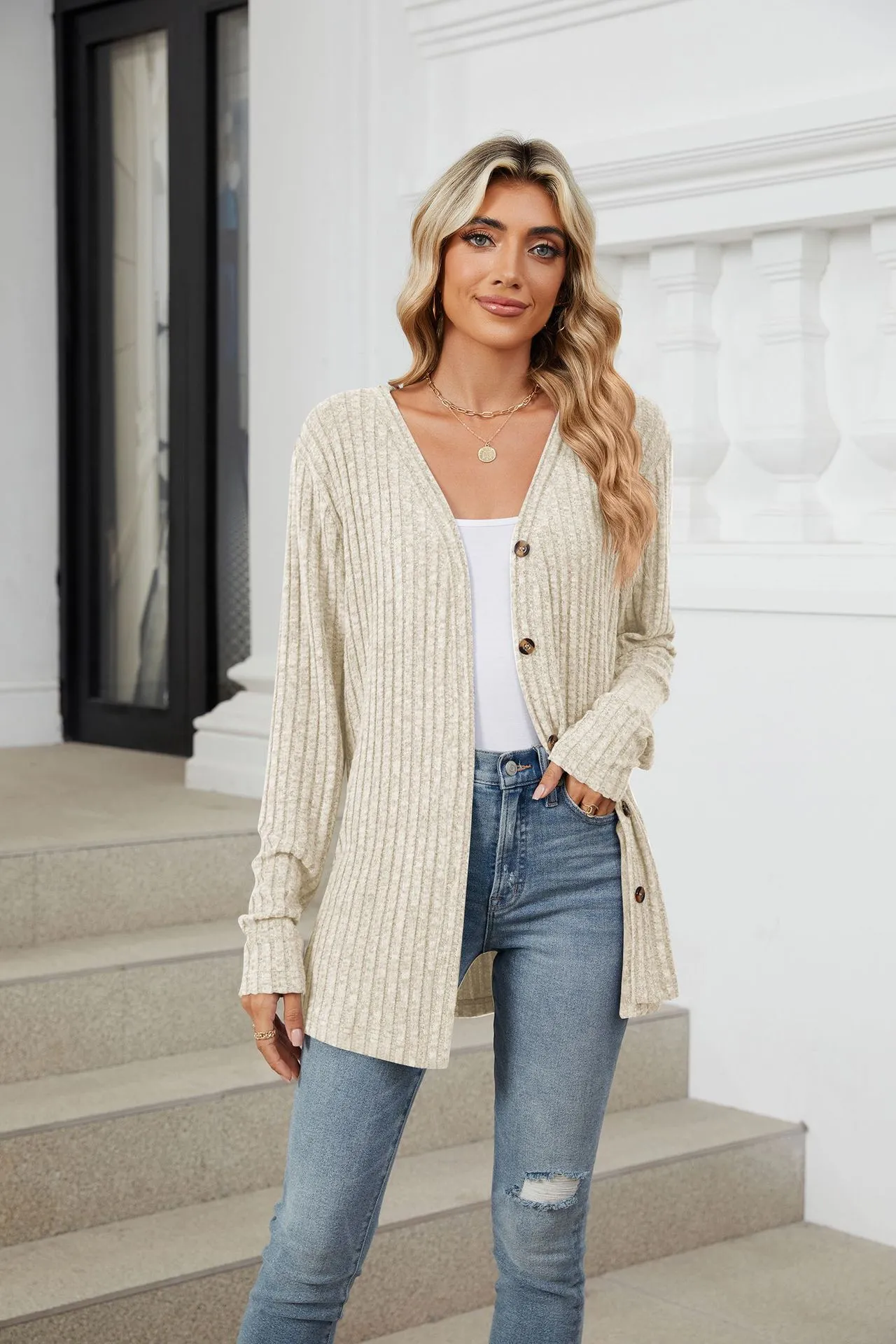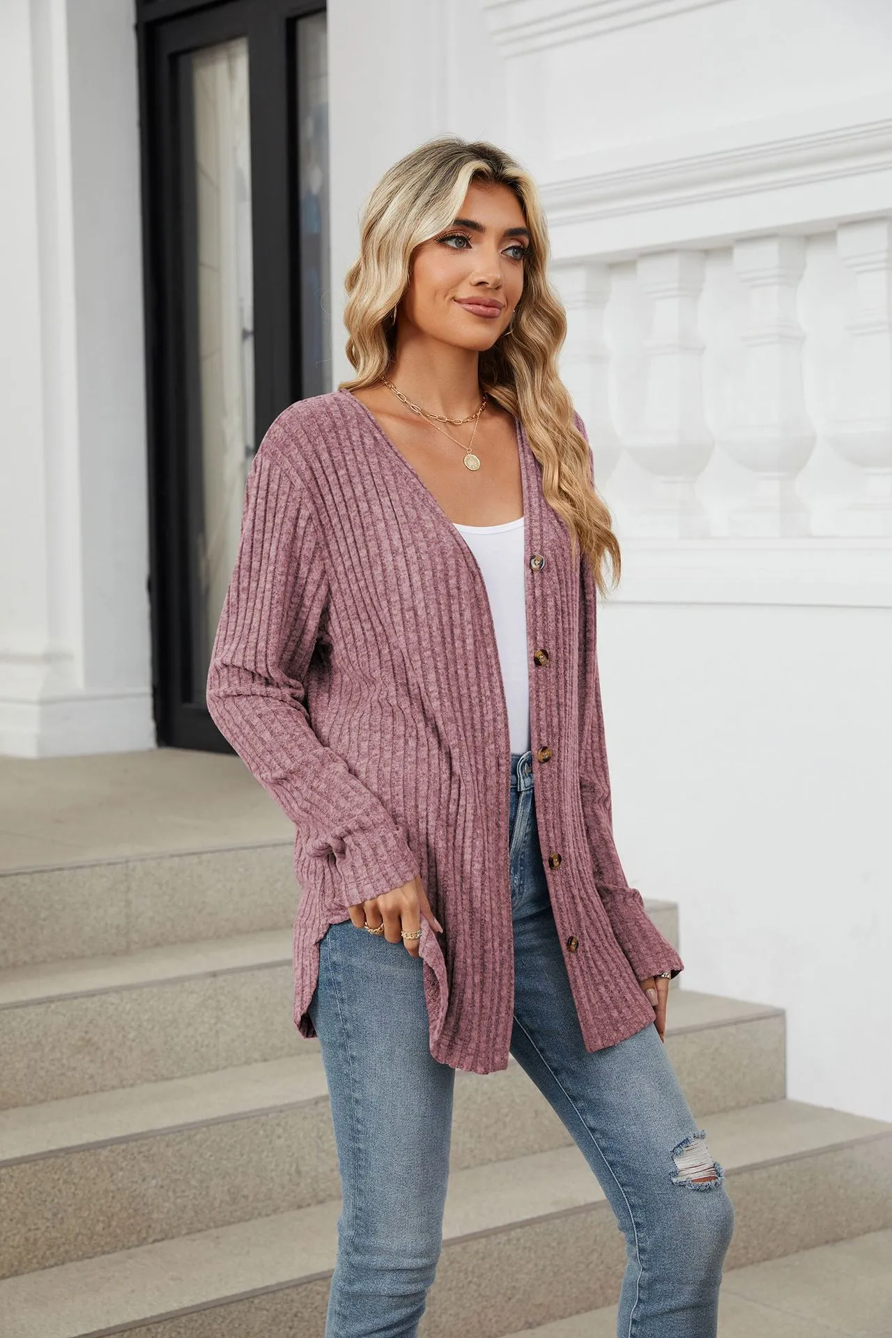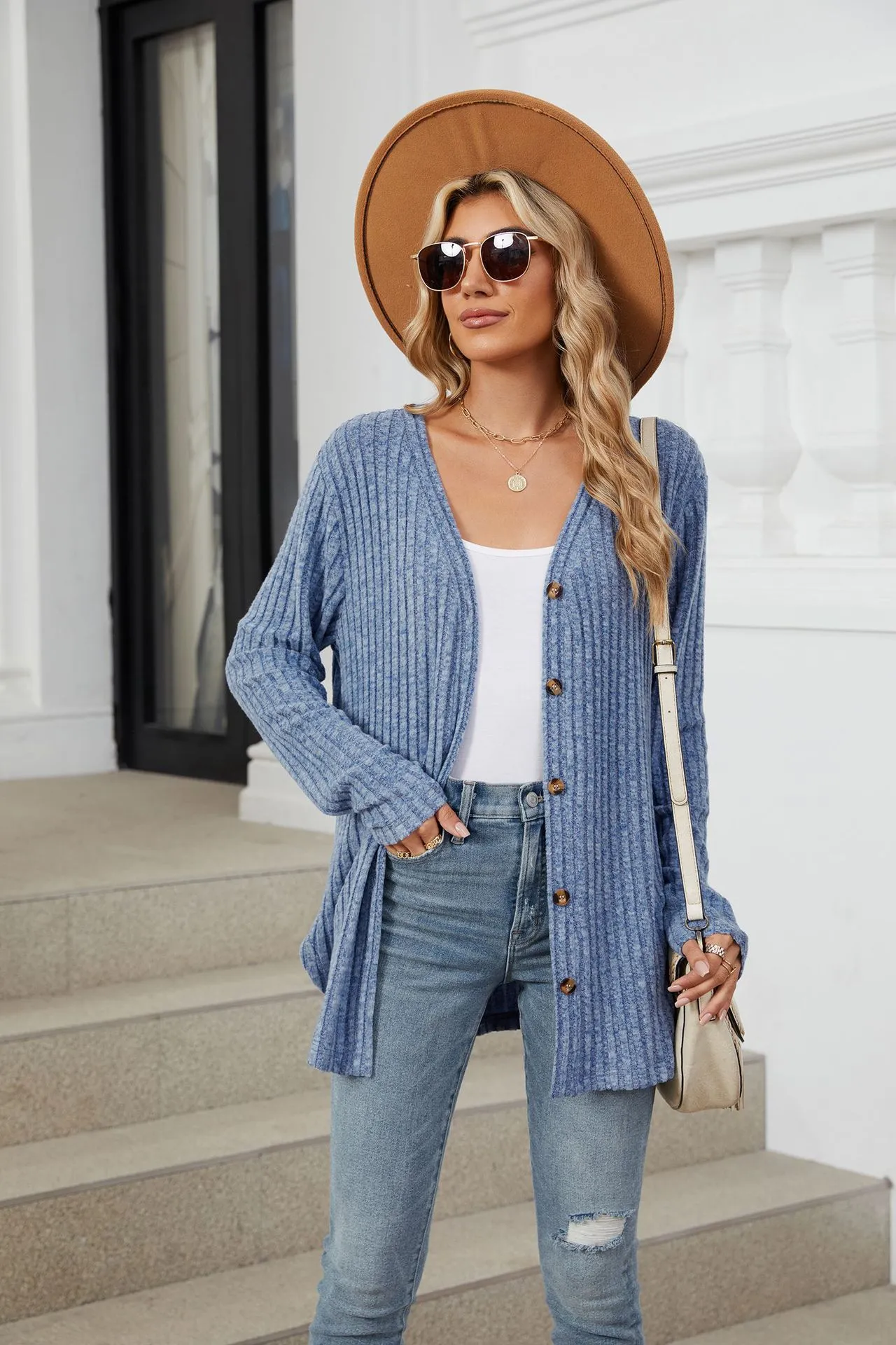 Solid Color Long Sleeve Button Cardigan Knitted And Emerized Coat