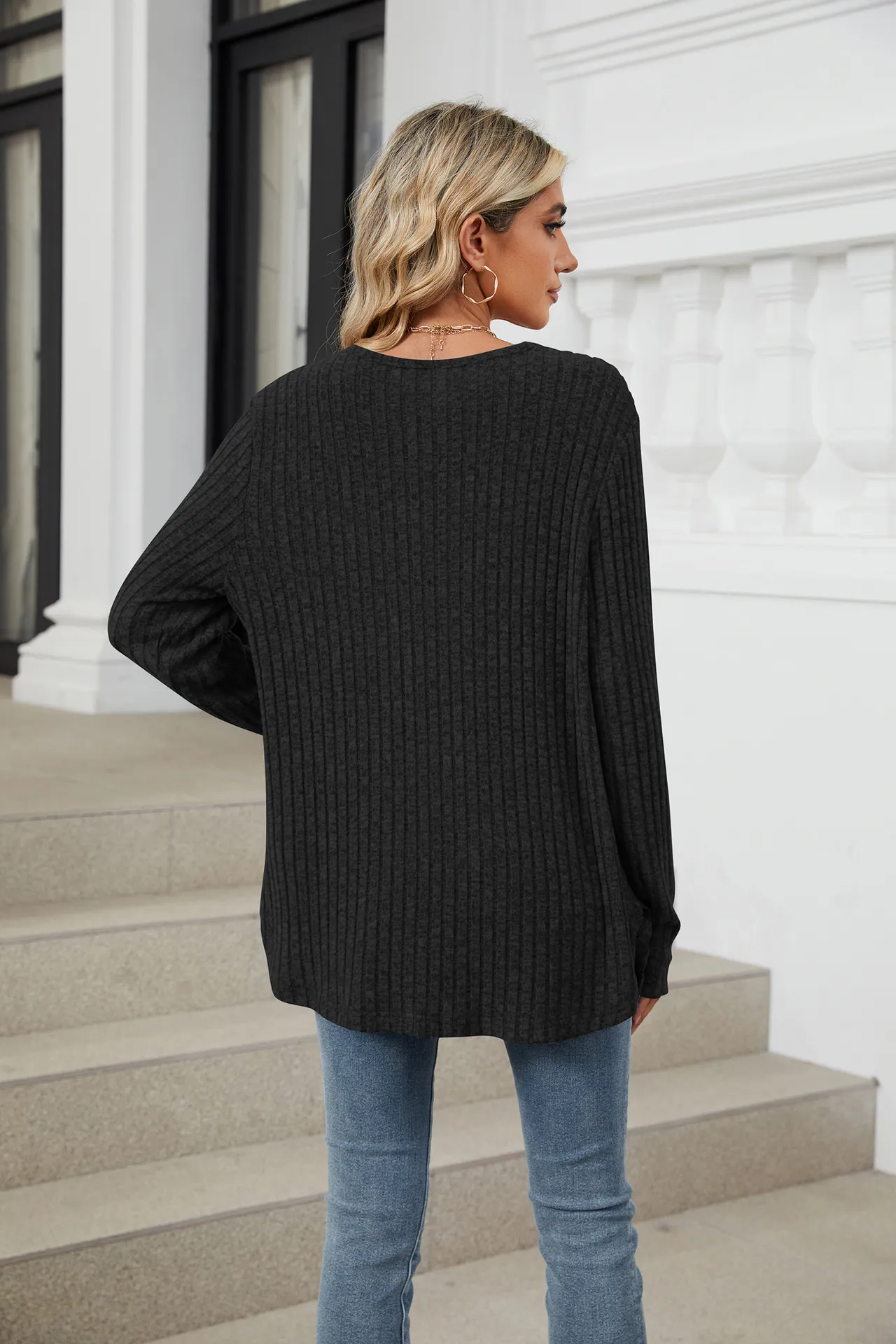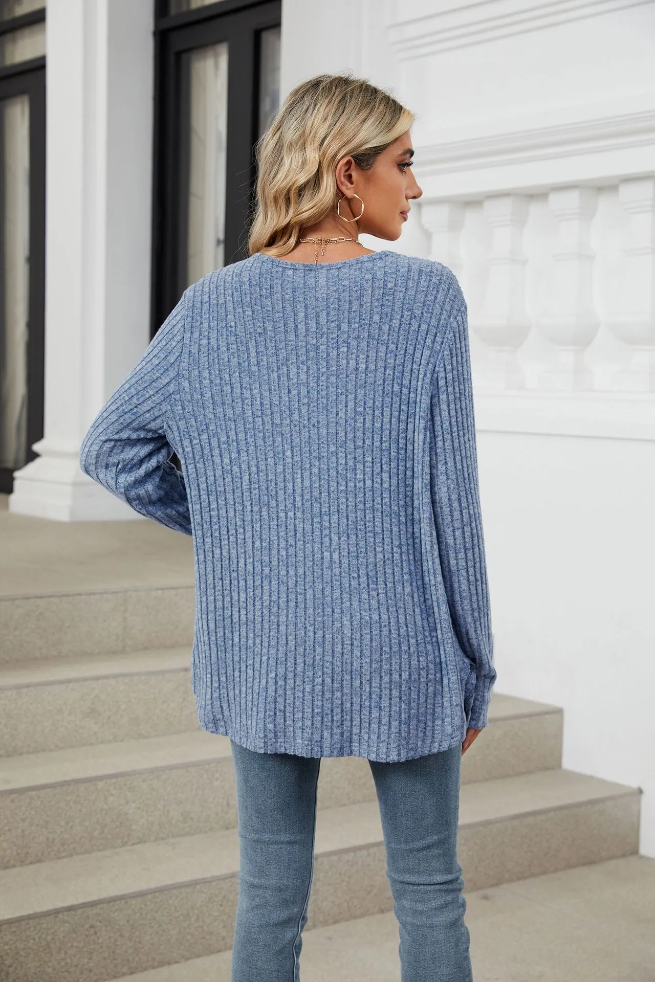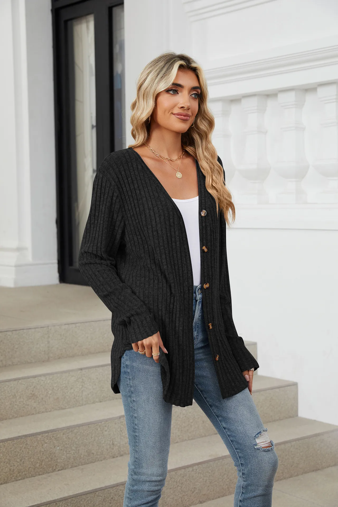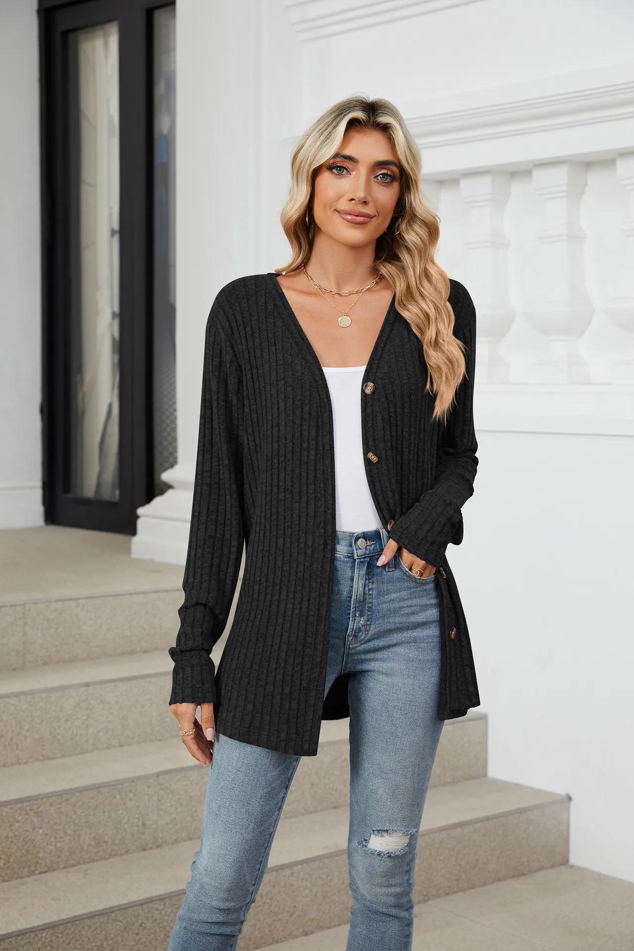 Solid Color Long Sleeve Button Cardigan Knitted And Emerized Coat