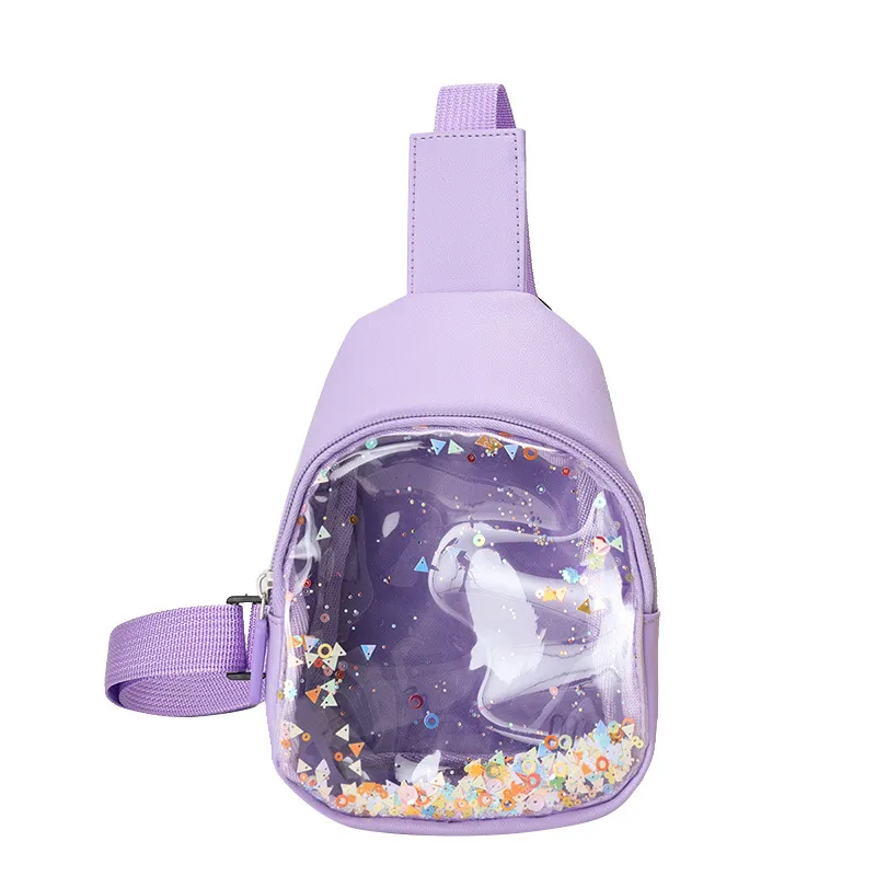 Solid Color PU Leather Children's Chest Pack Quicksand Lightweight Children's Trendy Cool Shoulder Bag