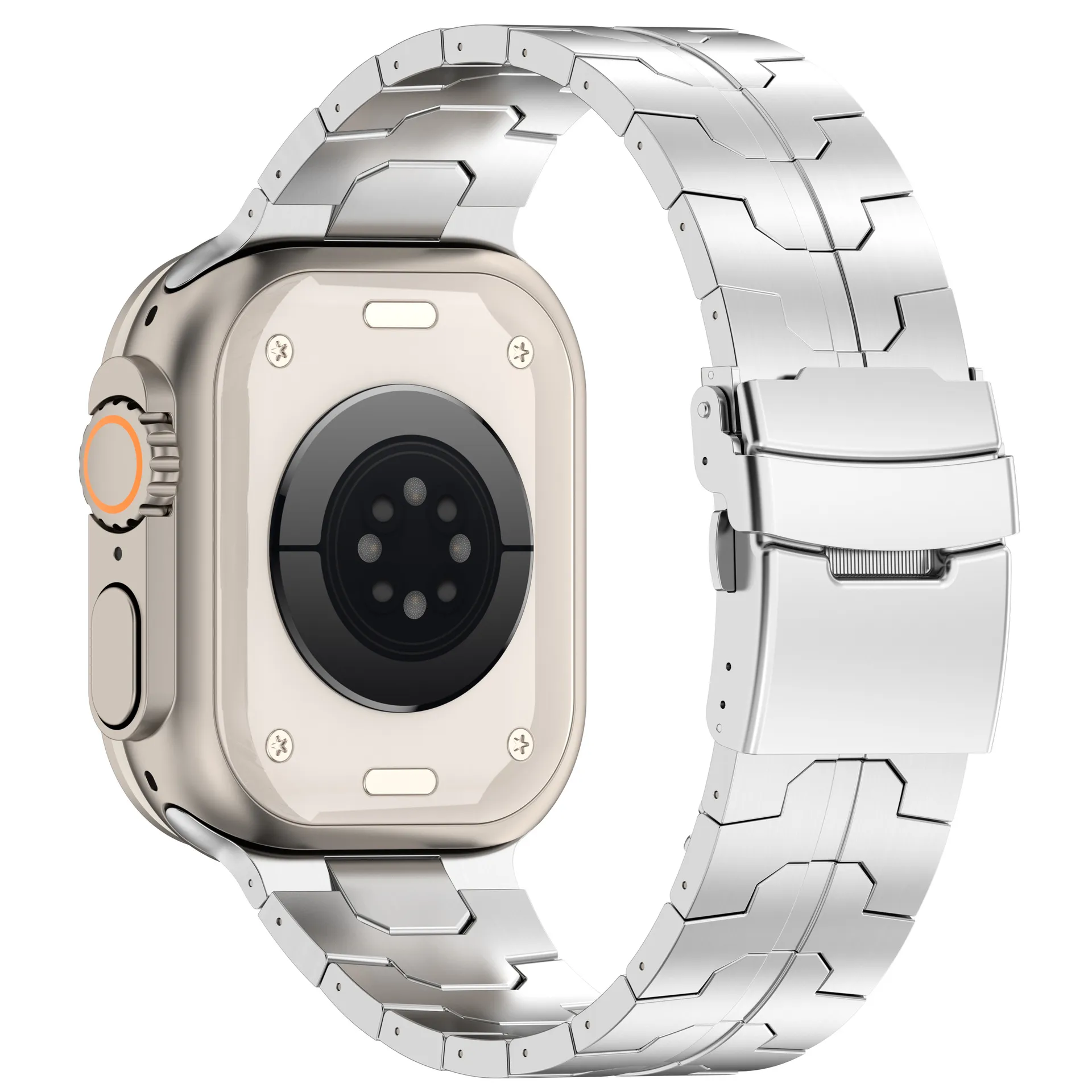 Titanium alloy is hypoallergenic, making this strap a great choice for those with sensitive skin. It’s gentle on the skin, preventing irritation and providing a comfortable wearing experience.