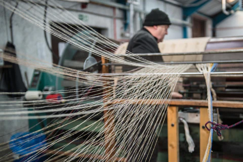 This shawl cardigan boasts a density comparable to heavy-duty maritime gear, all without compromising comfort. Crafted from soft acrylic yarn and featuring a vintage ribbed pleat pattern, it strikes a balance between density and elasticity, offering breathability. The front is adorned with two pockets, and it sports a mid-length cut.